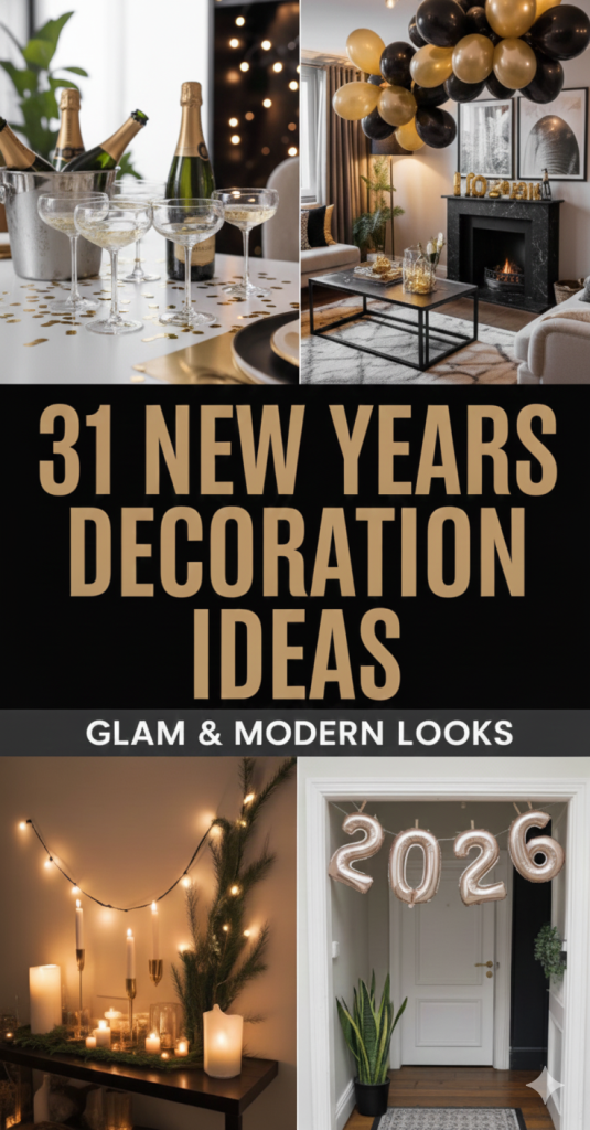 Use these 31 Glam & Modern New Year Decoration Ideas to transform your living room, entryway, or party area into an unforgettable celebration space. Start the new year right with a home that truly reflects the best of 2026 home decor trends!