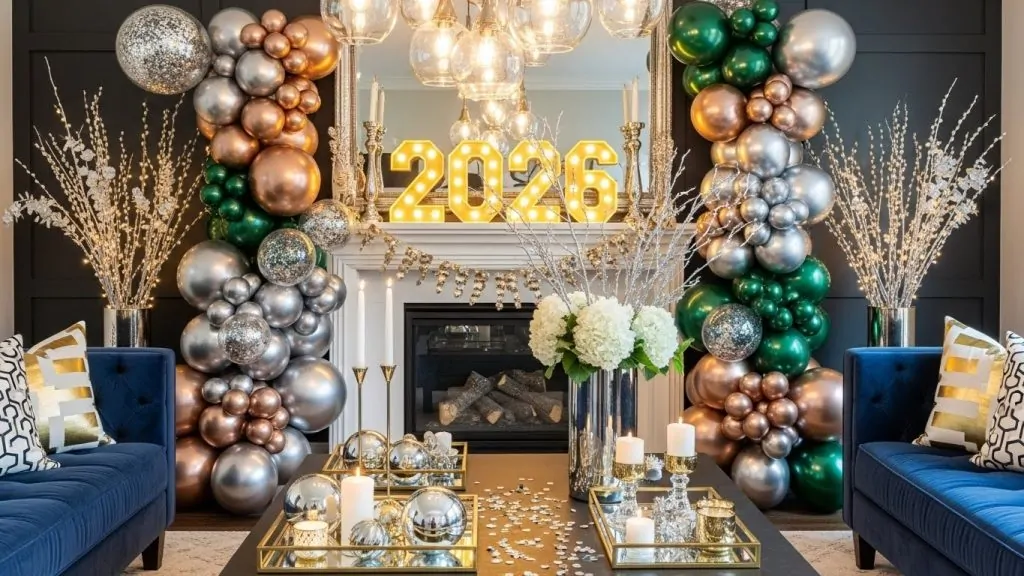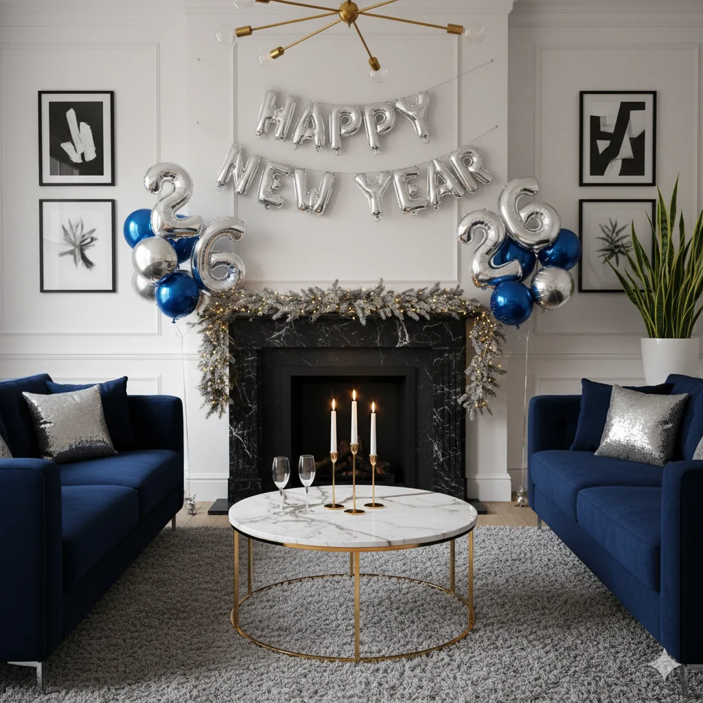 • Balloon Brilliance: It’s not a New Year’s celebration without balloons! Silver “HAPPY NEW YEAR” letter balloons are a must-have. Complement them with bold 2026 number balloons in contrasting metallic blue and silver. These are fantastic for announcing the new year and creating a festive backdrop that’s truly Instagram-worthy.